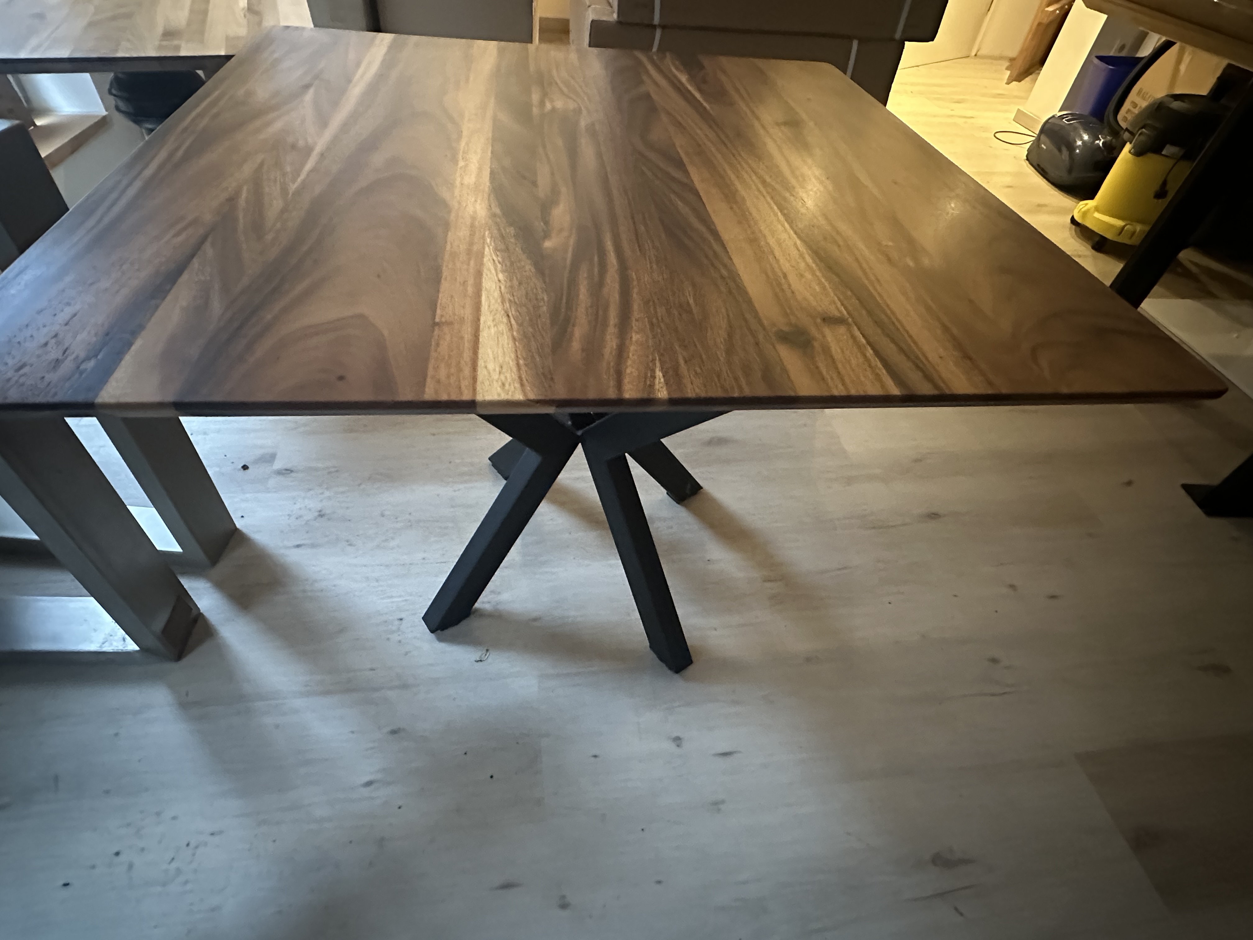 Wir bieten die Tischplatte in verschiedenen Holzarten an: Eiche, Saman, Akazie