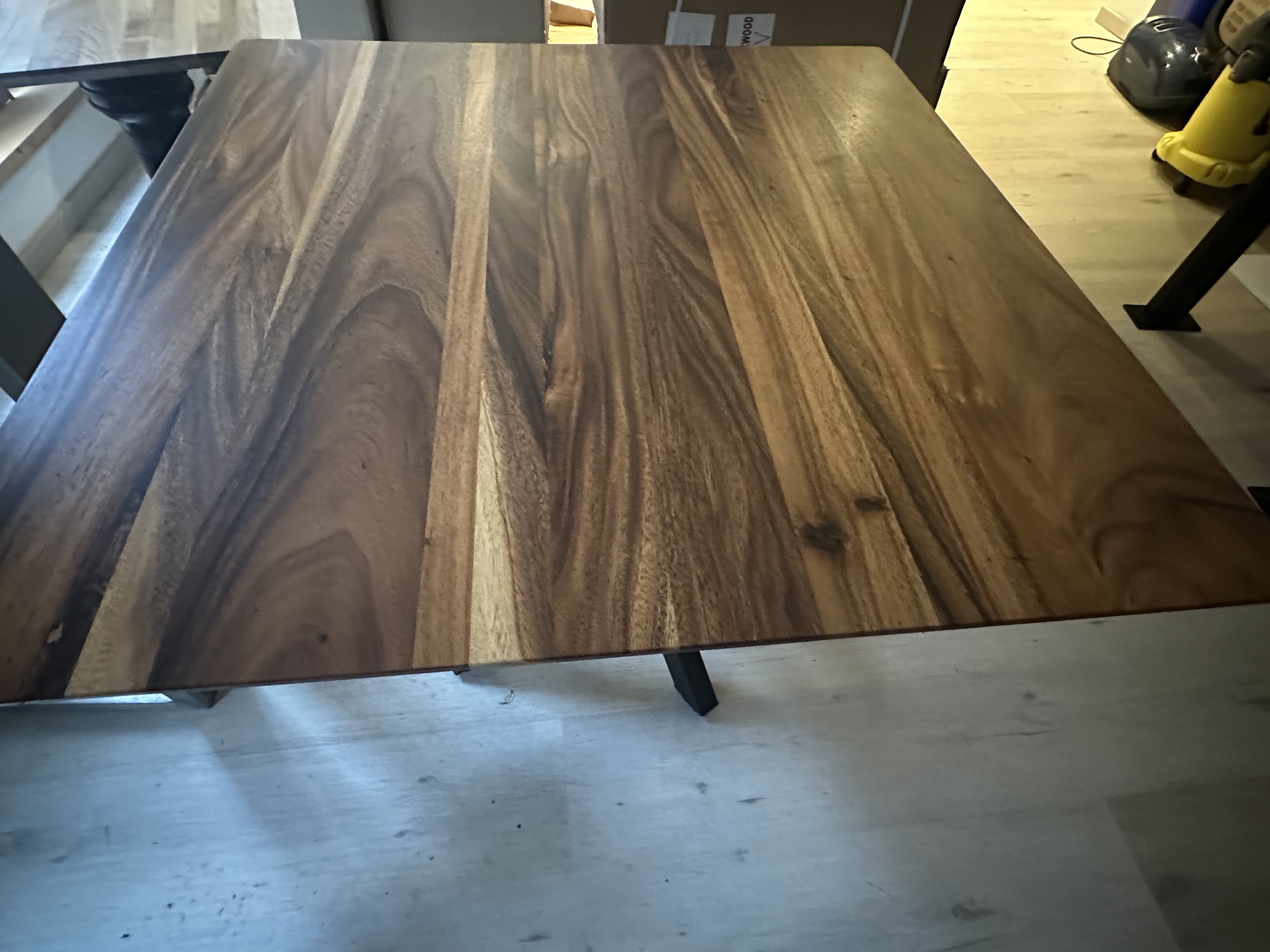 Wir bieten die Tischplatte in verschiedenen Holzarten an: Eiche, Saman, Akazie